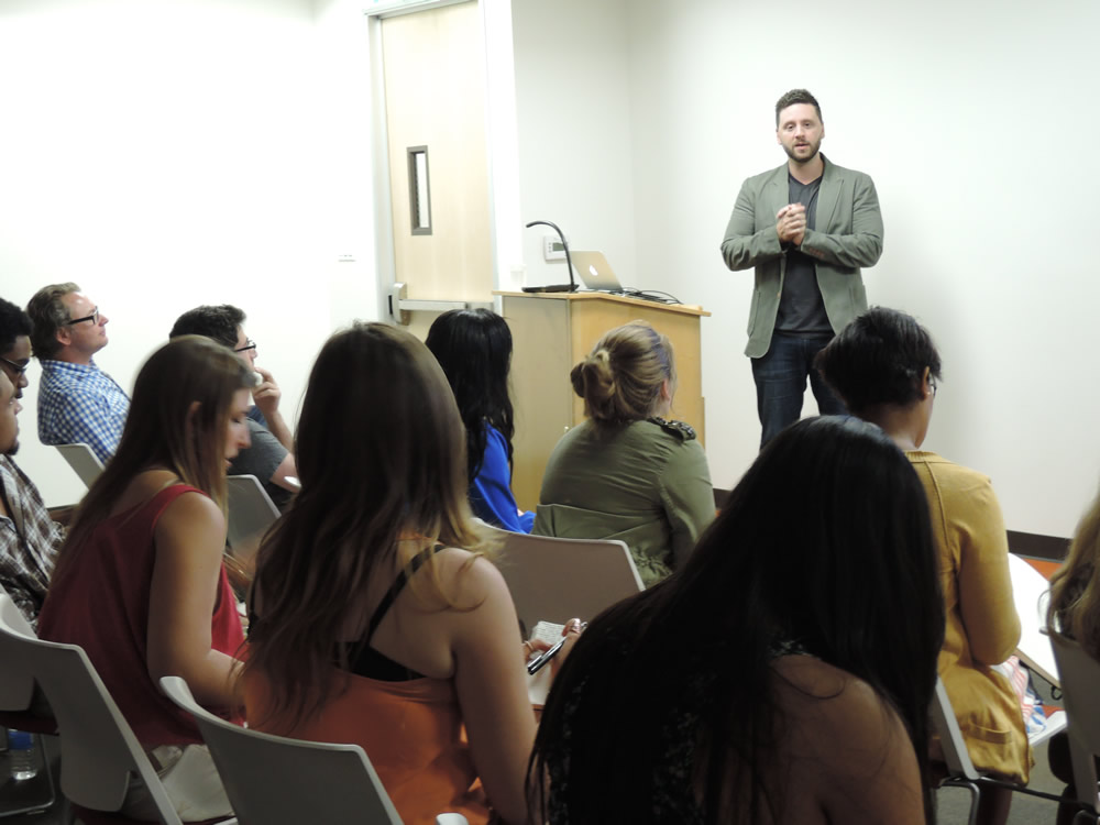 Wednesday was capped at the SULA facility by an evening presentation from Adam Reynolds (NEW‘06), who spoke passionately about the directions the LA film market is taking today and how that will affect filmmakers coming along.